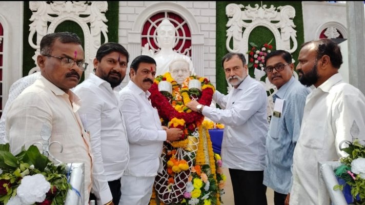 फलटण : भारतीय राज्यघटनेचे शिल्पकार भारतरत्न डॉ.बाबासाहेब आंबेडकर यांच्या १३४ व्या “जयंती” निमित्त आंबेडकर चौक, फलटण येथे डॉ.बाबासाहेब आंबेडकर यांच्या पुतळ्यास पुष्पहार अर्पण करुन मा.आमदार दिपकराव चव्हाण साहेब, श्रीमंत संजीवराजे नाईक निंबाळकर (बाबा), मा.अध्यक्ष, जिल्हा परिषद, सातारा यांनी अभिवादन केले, यावेळी मा.नगरसेवक श्री.सनी अहिवळे, श्रीराम कारखाना संचालक श्री.महादेवराव माने, दादासाहेब चोरमले, अनिल शिरतोडे, रामभाऊ मदने, अय्याज शेख, हरिष काकडे, संग्राम अहिवळे, लक्ष्मण काकडे, गणेश बिऱ्हाडे, रोहित विलास अहिवळे, दत्तात्रय मोहिते, पत्रकार प्रशांत अहिवळे इत्यादी मान्यवर उपस्थित होते, याप्रसंगी भारतरत्न डॉ.बाबासाहेब आंबेडकर जयंती महोत्सव समिती, फलटण’चे पदाधिकारी व नागरिक बंधू-भगिनी मोठ्या संख्येने उपस्थित होते.