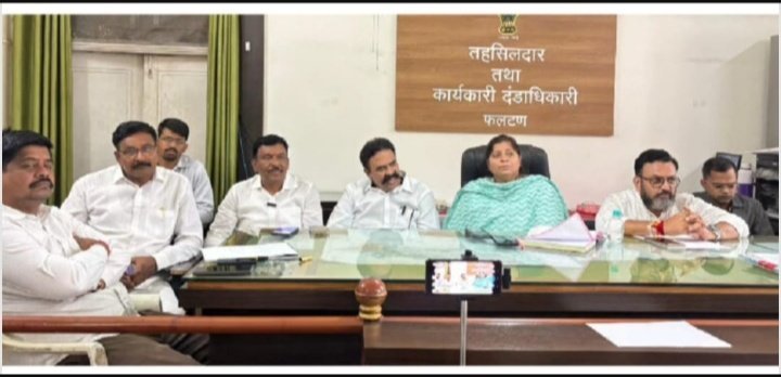 फलटण : तहसीलदारांच्या दालनात चक्क राजकीय पदाधिकाऱ्यांनी फलटणचे तहसीलदार तथा कार्यकारी दंडाधिकारी डॉ. अभिजीत जाधव, मुख्याधिकारी निखिल मोरे,पंचायत समितीचे संबंधित विभागाचे अधिकारी यांनाच बाजूला सारत त्यांनाच कोपऱ्यात बसवून त्यांच्याच दालनात राजकीय पक्षाच्या पदाधिकाऱ्यांनी संविधानिक पदाची कुचेष्टा केल्याचा आरोप नागरिकांमधून होताना दिसत आहे.फलटण तालुक्यात गेल्या पाच दिवसापासून अतिवृष्टीमुळे जनजीवन विस्कळीत झाले असून फलटण तालुक्यात जमिनी,पिके,रस्ते,घरांचे अतोनात नुकसान झाले आहे.त्यासंदर्भात फलटण तहसील कार्यालयात फलटण शहर आणि ग्रामीण भागात होत असलेल्या अतिवृष्टीमुळे सर्वत्र पूर सदृश्य परिस्थिती निर्माण झालेली असलेने सदर परिस्तीचा आणि शासकीय आपत्कालीन व्यवस्थेची आढावा घेणेसाठी तहसीलदार कार्यालय फलटण येथे अती तातडीची बैठक आयोजित करण्यात आली होती.
