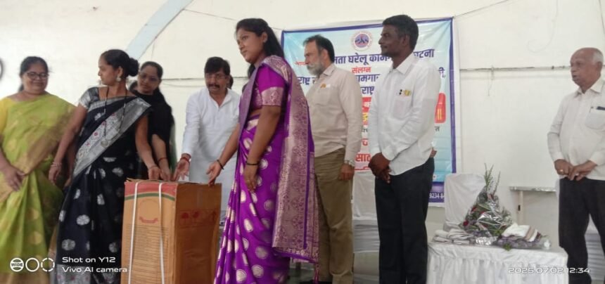 दिनांक २ जुलै २०२५ रोजी, घरगुती बांधकाम क्षेत्रात काम करणाऱ्या कामगारांना घरेलू उपयोगासाठी भांडी सेट वाटप करण्यात आले. हा कार्यक्रम एक सामाजिक उपक्रम म्हणून आयोजित करण्यात आला होता.