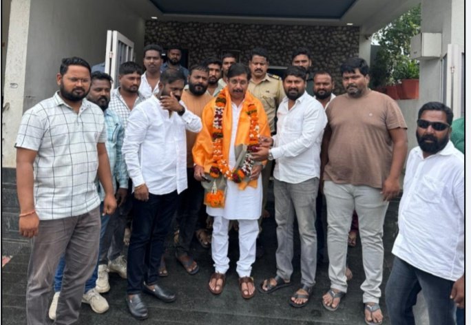 माढा लोकसभा मतदारसंघाचे लोकप्रिय खासदार धैर्यशील मोहिते – पाटील यांनी फलटण नगर पालिकेचे माजी नगरसेवक सनी अहिवळे यांच्या फलटण येथील बुद्ध या निवासस्थानी नुकतीच भेट दिली . याप्रसंगी युवा उद्योजक संग्राम अहिवळे यांच्यासह विविध कार्यकर्ते उपस्थित होते . यावेळी खासदार धैर्यशील मोहिते पाटील यांनी माजी नगरसेवक सनी अहिवळे , संग्राम अहिवळे यांच्याबरोबर विविध विषयावर चर्चा केली . येऊ घातलेल्या नगरपालिका निवडणुकीच्या अनुषंगाने ही भेट महत्त्वाची मानली जाते