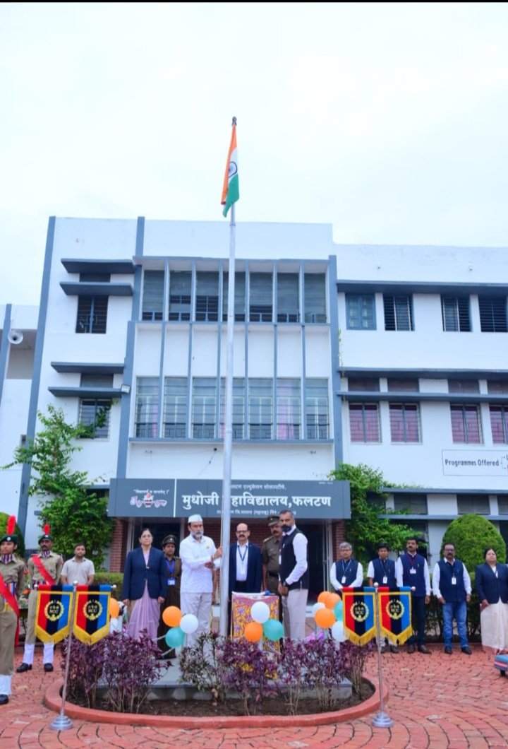 फलटण एज्युकेशन सोसायटीच्या मुधोजी महाविद्यालयात स्वातंत्र्य दिन प्रमुख मान्यवरांच्या उपस्थितीत उत्साह पूर्ण वातावरणात विविध उपक्रमांनी साजरा करण्यात आला.